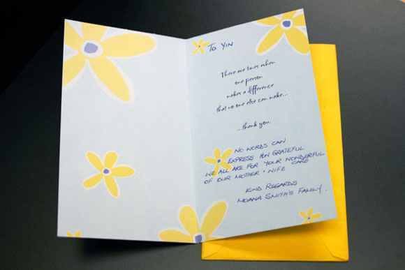 It is a small token of my appreciation & gratitude for everything you, Auntie Ing have done to help my family. I want to sincerely thank you.