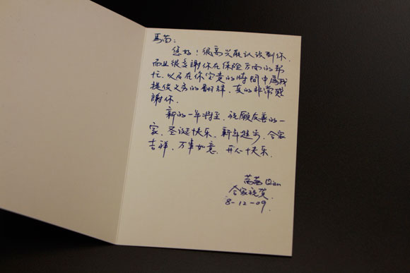 安妮晚上好,收到短信萬分感謝,謝謝你和馬茵一直對我的幫助。未出國前我聽很多人說到了國外沒有親情,但這都是道聼塗説,你和馬茵就像我的親人,這種耐心精神難以讓我忘懷。安妮再一次的謝謝你,我記住你的這份情改日一定補還,看病的日期我記住了,給你說聲晚安。